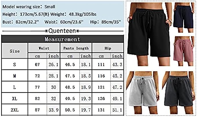 Quenteen Womens Lounge Bermuda Shorts Casual Summer Cotton Knee Length Shorts with Pockets